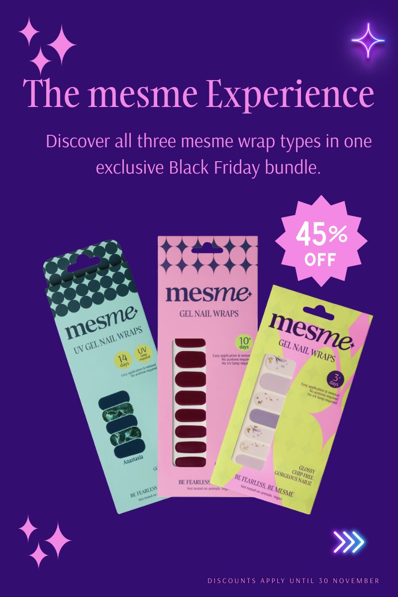 We love a salon moment for me-time. mesme is for everything in between—when time, budget or travel get in the way, when you want to switch colours on a whim, or want staying power without damage (no harsh acetone).